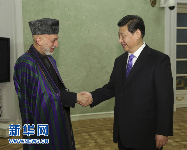????習(xí)近平指出,2014年之后,阿富汗的命運將更加緊密地同地區(qū)國家聯(lián)系在一起。中方支持阿富汗融入地區(qū)經(jīng)濟合作。中方將于8月舉辦阿富汗問題伊斯坦布爾進程第四次外長會,我們愿同阿方密切合作,辦好這次會議。中方也愿推動上海合作組織在阿富汗問題上發(fā)揮更大作用。