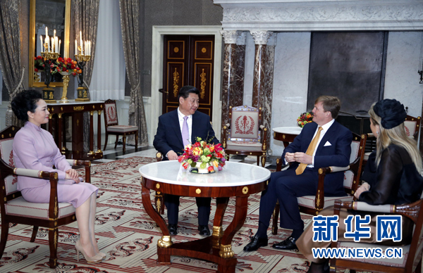 國家主席習(xí)近平在阿姆斯特丹會(huì)見荷蘭國王威廉-亞歷山大。新華社記者鞠鵬攝