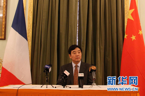 ??? 3月21日,中國駐法國大使翟雋接受駐法中文媒體聯(lián)合采訪。中國駐法國大使翟雋日前就習(xí)近平主席訪法接受駐法中文媒體聯(lián)合采訪時表示,這次訪問是中法建交50周年慶祝活動的高潮,是一次具有歷史意義的訪問,將推動中法全面戰(zhàn)略伙伴關(guān)系再上新臺階。新華社記者鄭斌攝
