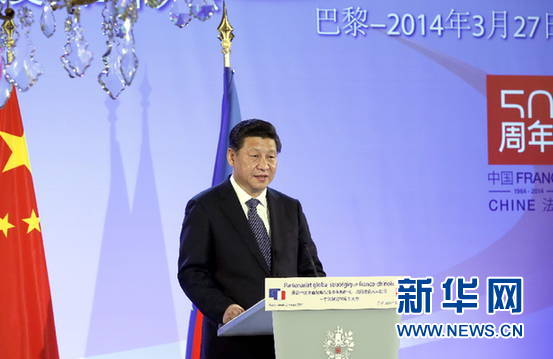 ????新華網(wǎng)巴黎3月27日電(記者李斌 劉華)中法建交50周年紀念大會27日在巴黎舉行。國家主席習(xí)近平和法國總統(tǒng)奧朗德共同出席并發(fā)表重要講話。習(xí)近平總結(jié)中法關(guān)系50年來的成功經(jīng)驗,闡述對兩國關(guān)系發(fā)展的政策主張,希望中法兩國人民在實現(xiàn)中國夢和法國夢的過程中相互理解、相互幫助,共同實現(xiàn)“中法夢”。