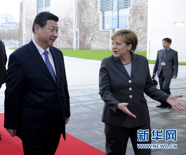 ????新華網(wǎng)柏林3月28日電(記者陳贄 錢(qián)彤 唐志強(qiáng))國(guó)家主席習(xí)近平28日在柏林同德國(guó)總理默克爾舉行會(huì)談。雙方就中德關(guān)系及共同關(guān)心的重大國(guó)際和地區(qū)問(wèn)題深入交換意見(jiàn),達(dá)成重要共識(shí),決定將兩國(guó)關(guān)系提升為全方位戰(zhàn)略伙伴關(guān)系,為中德關(guān)系發(fā)展進(jìn)一步確定了方向。