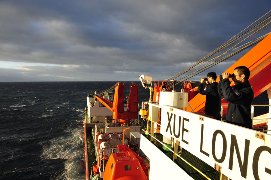 ????經(jīng)中國海上搜救中心同意,“雪龍”號科考船28日下午全速趕往澳大利亞海事安全局最新調(diào)整的搜尋區(qū),并將與“海巡01”會合,進行中方船只現(xiàn)場指揮聯(lián)絡工作的交接。根據(jù)國際調(diào)查團隊向澳方提出的建議,澳大利亞海事安全局28日調(diào)整了搜索部署,搜尋范圍發(fā)生較大改變。新華社記者張建松攝