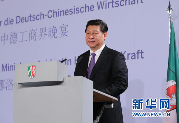 ??? 新華網(wǎng)德國杜塞爾多夫3月29日電(記者班瑋? 李斌)國家主席習(xí)近平29日在杜塞爾多夫出席中德工商界舉行的招待會并發(fā)表題為《把握中國機(jī)遇,實現(xiàn)共同發(fā)展》的重要講話,闡述對加強(qiáng)兩國經(jīng)貿(mào)合作的主張,強(qiáng)調(diào)中國全面深化改革、進(jìn)一步擴(kuò)大開放為中德合作帶來巨大機(jī)遇,表示堅信,中德攜手,真誠合作,一定能夠成就各自美好夢想。