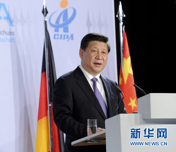 ????習(xí)近平贊賞兩國工商界為推動中德關(guān)系和中歐關(guān)系發(fā)展作出的重要貢獻(xiàn),表示相信,中德攜起手來,腳踏實地,真誠合作,一定能夠成就兩國人民的美好夢想。