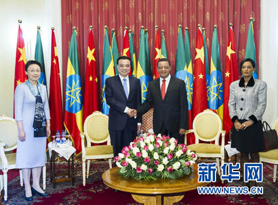 國(guó)務(wù)院總理李克強(qiáng)當(dāng)?shù)貢r(shí)間6日上午在亞的斯亞貝巴國(guó)家宮會(huì)見(jiàn)埃塞俄比亞總統(tǒng)穆拉圖。