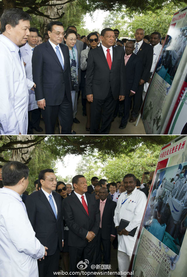 ??? 李克強(qiáng)親手為埃塞患者拆紗布