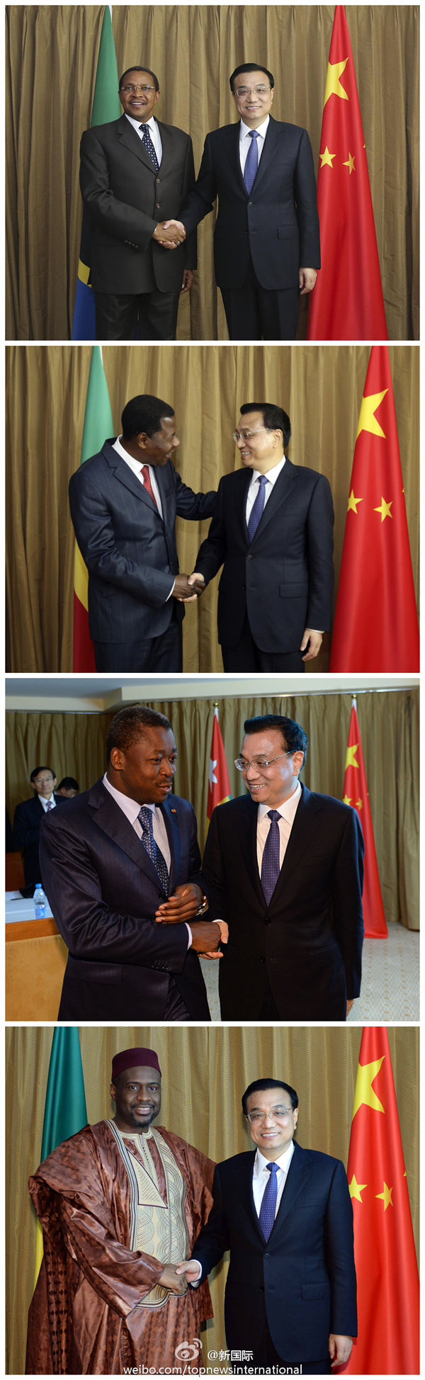 ????新華網(wǎng)北京5月8日電 據(jù)新華社“新國際”微博報道,李克強(qiáng)7日分別會見了出席第24屆世界經(jīng)濟(jì)論壇非洲峰會的坦桑尼亞、貝寧、多哥三國總統(tǒng)和馬里總理。會見中,四國領(lǐng)導(dǎo)人對李克強(qiáng)在非盟演講中提出的中非“461”合作框架表示高度贊同,稱其符合非洲人民的心愿,愿努力將其轉(zhuǎn)化為實實在在的成果。