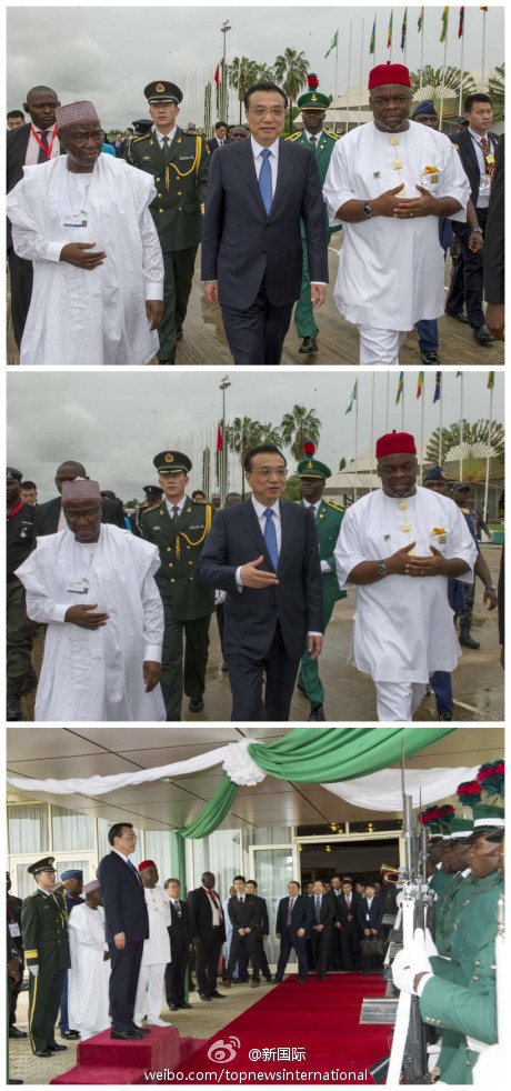 ????新華網北京5月9日電 據新華社“新國際”微博報道,當地時間8日下午,國務院總理李克強結束對尼日利亞的訪問,啟程前往安哥拉繼續(xù)訪非行程,尼日利亞外長、勞工部長等官員到機場送行。