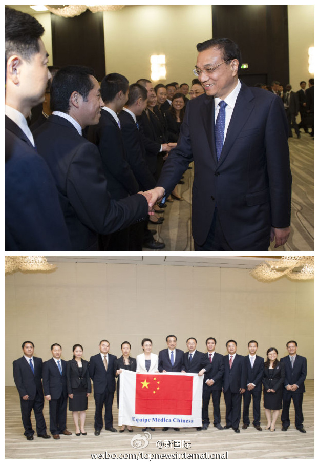 ??? 新華網(wǎng)北京5月9日電 據(jù)新華社“新國(guó)際”微博報(bào)道,8日,李克強(qiáng)總理在羅安達(dá)看望援安醫(yī)療隊(duì)。“有什么困難嗎?”李克強(qiáng)與隊(duì)員一一握手,詢問工作情況。得知隊(duì)員最大的困難是語(yǔ)言,李克強(qiáng)鼓勵(lì)大家說(shuō),辦法總比困難多,雖然語(yǔ)言溝通有障礙,但可以用心靈感受對(duì)方疾苦,讓對(duì)方切身感受到中國(guó)人民的美好情誼。?