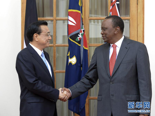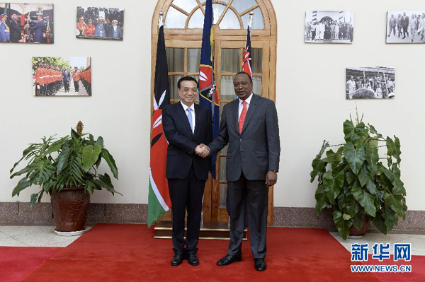 ????肯雅塔代表肯尼亞政府和人民熱烈歡迎李克強訪肯,表示在周恩來總理訪非50周年之際,李克強總理對非洲進行的里程碑式訪問取得圓滿成功,將進一步深化非中新型戰(zhàn)略伙伴關(guān)系??现杏兄嗤臍v史遭遇和發(fā)展任務(wù),肯方感謝中方對肯經(jīng)濟社會發(fā)展和保護生態(tài)環(huán)境、野生動物資源的幫助和支持,高度贊賞中國為維護非洲和平與發(fā)展作出的重要貢獻,完全贊同李克強總理在非盟演講中提出的“461”非中合作框架和在世界經(jīng)濟論壇非洲峰會特別致辭中提出的合作建設(shè)非洲基礎(chǔ)設(shè)施“三大網(wǎng)絡(luò)”的主張,愿與中方加強戰(zhàn)略溝通,全面推進各領(lǐng)域合作,實現(xiàn)共同發(fā)展??戏皆缸鲋袊髽I(yè)進入非洲的門戶,為推動非中合作發(fā)揮積極作用。