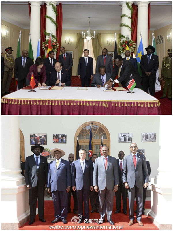 ??? 新華網(wǎng)北京5月11日電? 據(jù)新華社“新國(guó)際”微博報(bào)道,李克強(qiáng)總理、肯雅塔總統(tǒng)11日和東非其他五國(guó)總統(tǒng)或外長(zhǎng)共同見(jiàn)證了中肯蒙巴薩-內(nèi)羅畢鐵路相關(guān)合作協(xié)議的簽署。該鐵路是肯尼亞百年來(lái)建設(shè)的首條鐵路,將把中國(guó)的資金、技術(shù)、標(biāo)準(zhǔn)、裝備制造和管理經(jīng)驗(yàn)帶入非洲,為李克強(qiáng)此訪倡議的非洲“三大網(wǎng)絡(luò)”中的鐵路網(wǎng)建設(shè)再添動(dòng)力。