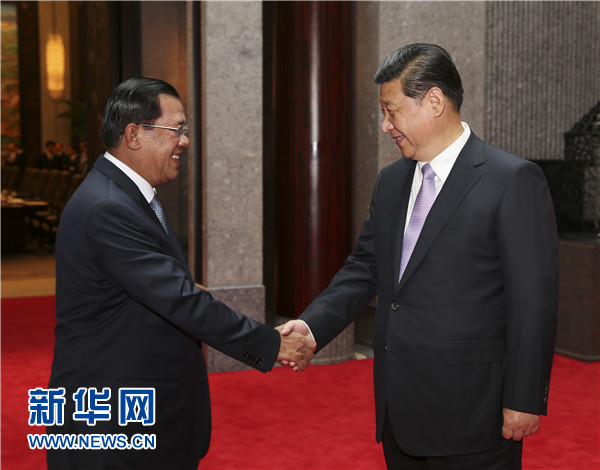 原標(biāo)題:習(xí)近平會(huì)見柬埔寨首相洪森