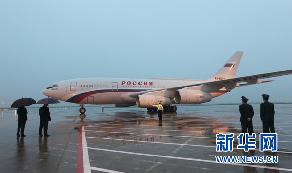 ??? 5月20日,俄羅斯聯(lián)邦總統(tǒng)普京抵達(dá)上海,開(kāi)始對(duì)中國(guó)進(jìn)行為期兩天的國(guó)事訪(fǎng)問(wèn)并出席在上海舉行的亞洲相互協(xié)作與信任措施會(huì)議第四次峰會(huì)。這是普京乘坐的專(zhuān)機(jī)抵達(dá)上海虹橋國(guó)際機(jī)場(chǎng)。 新華社記者 裴鑫 攝