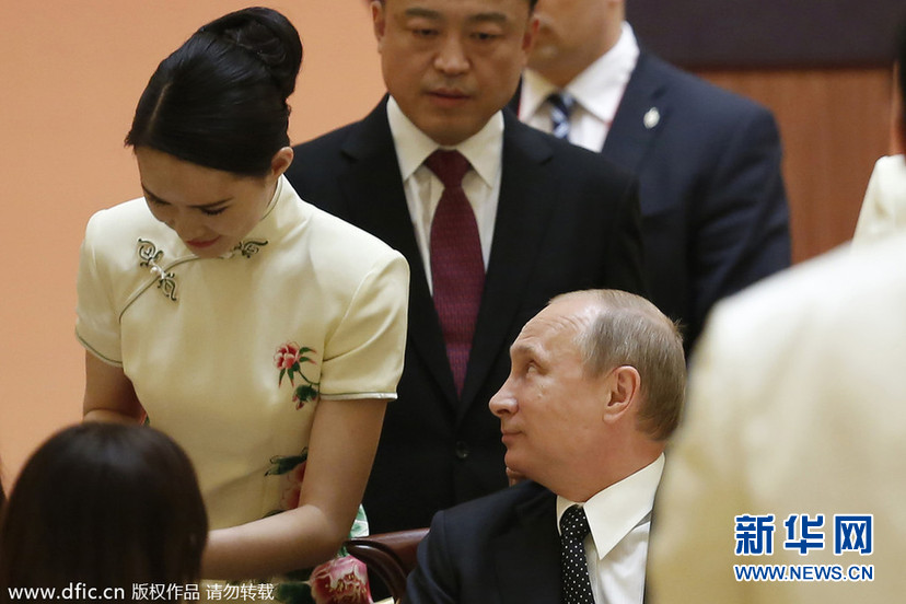 ??? 2014年5月20日,上海舉行亞洲相互協(xié)作與信任措施會議第四次峰會。俄羅斯總統(tǒng)弗拉迪米爾-普京出席2014上海亞信峰會歡迎晚宴,被美女禮儀服務小姐吸引。(圖片來源:東方IC)