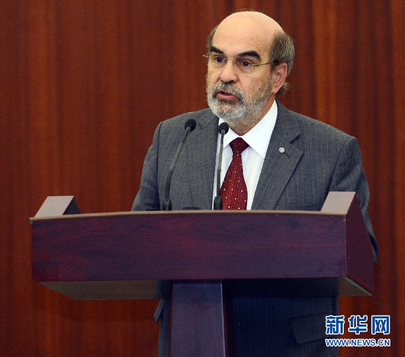 ????6月6日,在烏茲別克斯坦首都塔什干國際會(huì)議宮,聯(lián)合國糧農(nóng)組織總干事若澤·格拉齊亞諾·達(dá)席爾瓦在講話。(沙達(dá)提 攝)