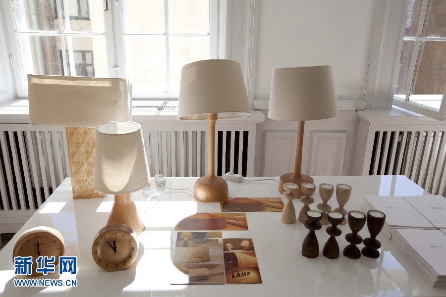 圖為10日所拍攝的“融?工藝設(shè)計(jì)生活”設(shè)計(jì)展上用竹條編織的臺燈。