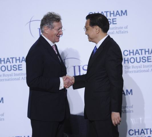 ??? 【英兩家頂級(jí)智庫搭臺(tái) 傾聽中國總理聲音】18日,李克強(qiáng)在擁有悠久歷史、金碧輝煌的倫敦金融城市長官邸,面向300多位智庫成員發(fā)表了題為《共建包容發(fā)展的美好世界》的演講。皇家國際事務(wù)研究所和國際戰(zhàn)略研究所同為全球頂級(jí)智庫。此間輿論認(rèn)為,由兩家研究所共同舉辦同一場(chǎng)演講極為罕見。