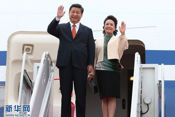 ??? 7月3日,國(guó)家主席習(xí)近平抵達(dá)首爾,開(kāi)始對(duì)韓國(guó)進(jìn)行國(guó)事訪問(wèn)。這是習(xí)近平和夫人彭麗媛走出機(jī)艙。 新華社記者 蘭紅光 攝