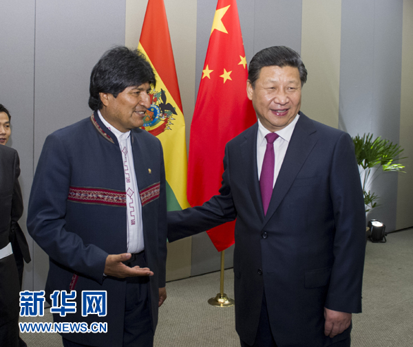 ????習(xí)近平指出,去年12月,莫拉萊斯總統(tǒng)成功訪華,我同你就兩國關(guān)系未來發(fā)展進行了深入探討。中玻關(guān)系發(fā)展很好,合作富有成果。中方愿同玻方一道,推動中玻關(guān)系邁向更高水平。雙方要保持高層交往以及政黨、立法機關(guān)、地方合作,夯實中玻長期友好政治基礎(chǔ)。兩國雙邊貿(mào)易增長迅速,在玻利維亞開展的重點合作項目進展順利,中方為玻方研制并發(fā)射的首顆通信衛(wèi)星已在軌交付并運行良好。雙方要繼續(xù)挖掘潛力,擴大貿(mào)易、能源、礦業(yè)、基礎(chǔ)設(shè)施建設(shè)等領(lǐng)域互利合作。雙方要加強人文交流,增進兩國人民相互了解和友誼。中方愿同玻方繼續(xù)在聯(lián)合國、“七十七國集團+中國”等多邊機制中保持密切溝通和配合。