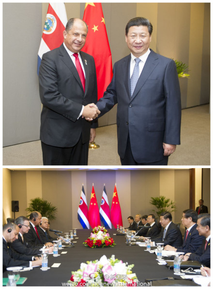 ??? 新華網(wǎng)北京7月17日電 據(jù)新華社“新國際”微博報道,習(xí)近平主席16日會見哥斯達(dá)黎加總統(tǒng)索利斯時說,中哥關(guān)系正如一棵茁壯成長的美洲象耳樹。中方愿繼續(xù)同哥方一道,把政治互信的根扎深,把互利合作的干養(yǎng)壯,使人文交流的葉繁茂,使中哥關(guān)系這棵大樹果實(shí)累累。(攝影:謝環(huán)馳)?