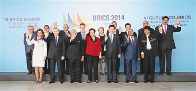 本報(bào)巴西利亞7月16日電 (記者杜尚澤、丁剛)7月16日,金磚國(guó)家同南美國(guó)家領(lǐng)導(dǎo)人對(duì)話會(huì)在巴西利亞舉行。中國(guó)國(guó)家主席習(xí)近平、巴西總統(tǒng)羅塞夫、俄羅斯總統(tǒng)普京、印度總理莫迪、南非總統(tǒng)祖馬以及蘇里南總統(tǒng)鮑特塞、阿根廷總統(tǒng)克里斯蒂娜、玻利維亞總統(tǒng)莫拉萊斯、哥倫比亞總統(tǒng)桑托斯、智利總統(tǒng)巴切萊特、厄瓜多爾總統(tǒng)科雷亞、圭亞那總統(tǒng)拉莫塔爾、巴拉圭總統(tǒng)卡特斯、秘魯總統(tǒng)烏馬拉、烏拉圭總統(tǒng)穆???、委內(nèi)瑞拉總統(tǒng)馬杜羅等南美國(guó)家領(lǐng)導(dǎo)人共同出席。
