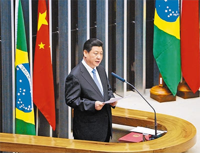 當?shù)貢r間7月16日,國家主席習(xí)近平在巴西國會發(fā)表演講。新華社記者 劉建生攝