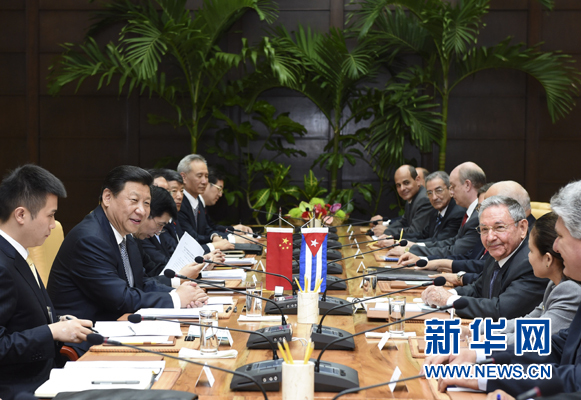 ????新華網(wǎng)哈瓦那7月22日電(記者潘國俊 趙勇陳贄)國家主席習(xí)近平22日在哈瓦那同古巴國務(wù)委員會主席兼部長會議主席勞爾·卡斯特羅舉行會談。在親切、友好、誠摯的氣氛中,兩國元首共同回顧中古關(guān)系發(fā)展,規(guī)劃兩國關(guān)系未來,達(dá)成重要共識,同心攜手開創(chuàng)兩國互利友好合作新局面。