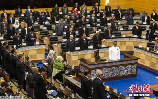 在國會會議上,納吉布與國會議員為客機(jī)遇難者默哀一分鐘。