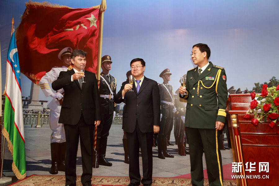 7月31日,中國(guó)駐烏茲別克斯坦大使館以孫立杰大使和黃天昌武官名義在塔什干米蘭賓館隆重舉行“八一”軍節(jié)招待會(huì)(新華社發(fā) 記者沙達(dá)提)