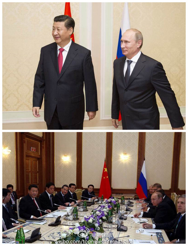 ????新華網(wǎng)北京9月12日電 據(jù)新華社“新國際”微博報道,國家主席習(xí)近平11日在塔吉克斯坦首都杜尚別會見俄羅斯總統(tǒng)普京時說,中俄雙邊關(guān)系和各領(lǐng)域合作勢頭強勁,雙方應(yīng)加大相互支持,擴大相互開放,相互給力借力,共同應(yīng)對外部風(fēng)險和挑戰(zhàn),實現(xiàn)各自發(fā)展振興的宏偉目標(biāo)。