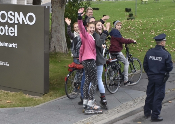 克強(qiáng)總理抵達(dá)后,柏林的街道兩旁,不少當(dāng)?shù)孛癖妼?duì)克強(qiáng)總理的車(chē)隊(duì)揮手、拍照。