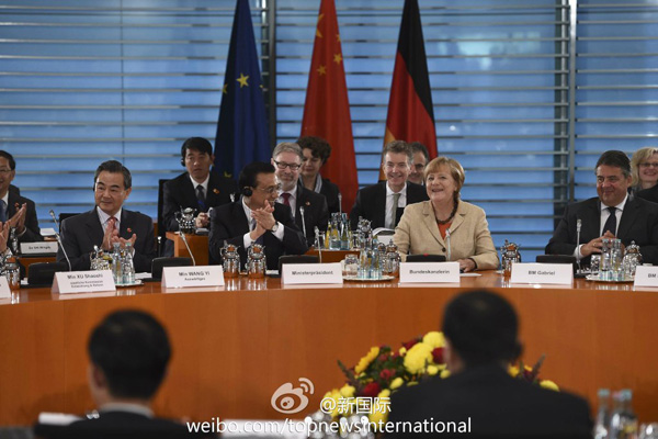 ????新華網(wǎng)北京10月10日電 據(jù)新華社“新國(guó)際”微博報(bào)道,“Happy Birthday!”在第三輪中德政府磋商會(huì)上,德國(guó)總理默克爾開場(chǎng)先向中方農(nóng)業(yè)部長(zhǎng)祝福生日!她說:雖然你不能和家人一起過,但我們會(huì)讓你過個(gè)愉快的生日。李克強(qiáng)總理提議大家舉水杯為這特別的生日送上祝福,還風(fēng)趣地說祝福農(nóng)業(yè)部長(zhǎng),意味著有保障糧食安全的基礎(chǔ)。