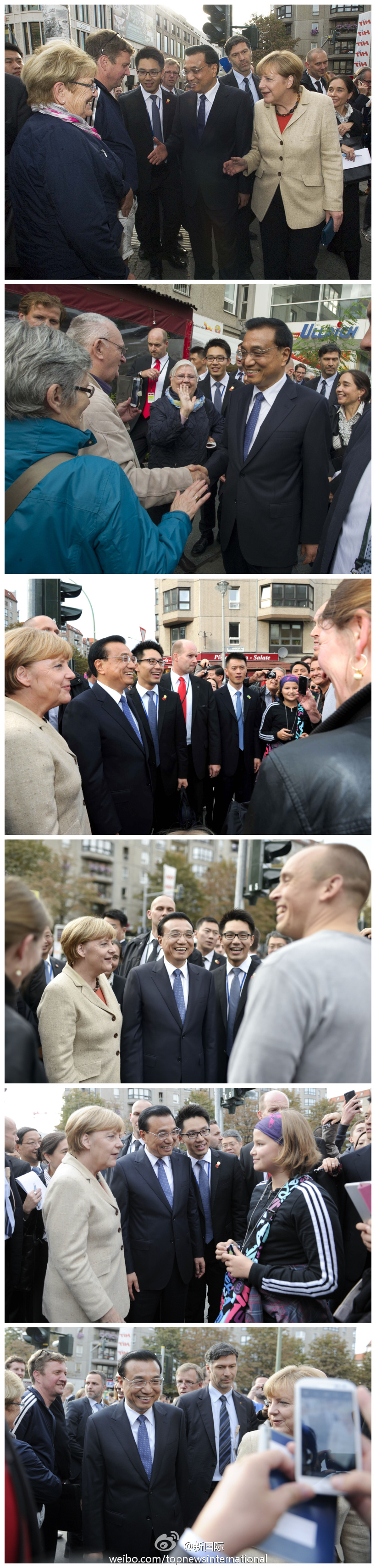 ????新華網(wǎng)北京10月11日電 據(jù)新華社“新國(guó)際”微博報(bào)道,中國(guó)國(guó)務(wù)院總理李克強(qiáng)和德國(guó)總理默克爾10日下午在共同會(huì)見(jiàn)記者后,共同乘車前往出席中德經(jīng)濟(jì)技術(shù)論壇,途中他們臨時(shí)停車,與在街頭的德國(guó)民眾親切交流互動(dòng)。