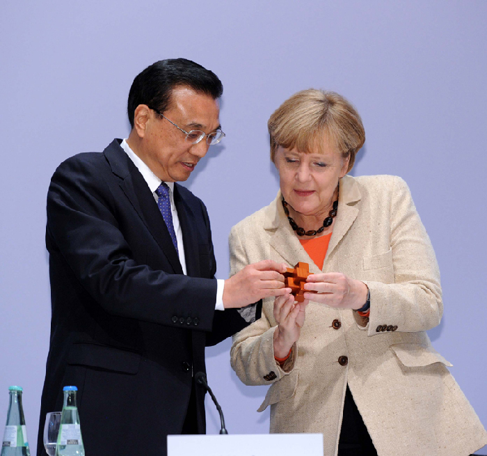 與默克爾共同出席第七屆中德經(jīng)濟技術(shù)合作論壇時,李克強在致辭最后提起,這次默克爾總理陪他逛了當?shù)匾患页?,買了兩張明信片送給他的家人,而他也帶來一份禮物,是中國天津中德職業(yè)技術(shù)學院學生的作品,學生們希望他在公開的場合把這個禮物送給默克爾,以表達對中德制造業(yè)深度融合的期待。