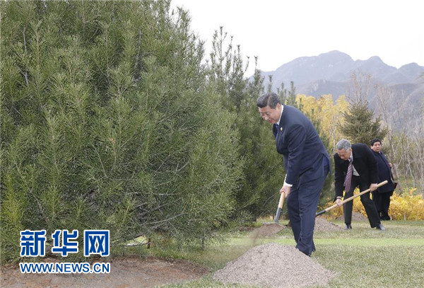 11月11日,國家主席習(xí)近平同亞太經(jīng)合組織經(jīng)濟體領(lǐng)導(dǎo)人或代表一道,在雁棲島上的夏園共同種下21棵白皮松,紀念亞太經(jīng)合組織成立25周年,表達對亞太互信、包容、合作、共贏的良好祝愿。