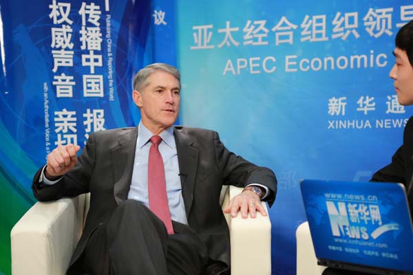 ????新華網(wǎng)北京11月11日電(記者 向博)美國(guó)卡特彼勒公司總裁芮德華9日在出席亞太經(jīng)合組織(APEC)工商領(lǐng)導(dǎo)人峰會(huì)期間接受新華網(wǎng)記者專訪,暢談基礎(chǔ)建設(shè)和工程機(jī)械行業(yè)在亞太地區(qū)的發(fā)展以及中國(guó)市場(chǎng)布局等話題。