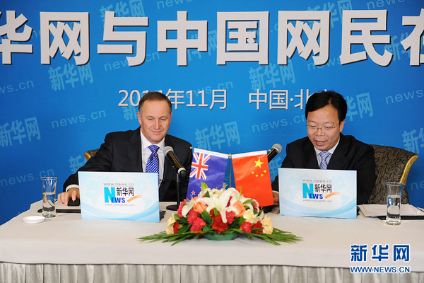 ??? 新華網(wǎng)北京11月11日電 新西蘭總理約翰·基11月10日至11日出席在北京舉行的亞太經(jīng)合組織第二十二次領(lǐng)導(dǎo)人非正式會(huì)議。11日,約翰·基在新華網(wǎng)與中國(guó)網(wǎng)民在線交流,回答中國(guó)網(wǎng)民的問題。