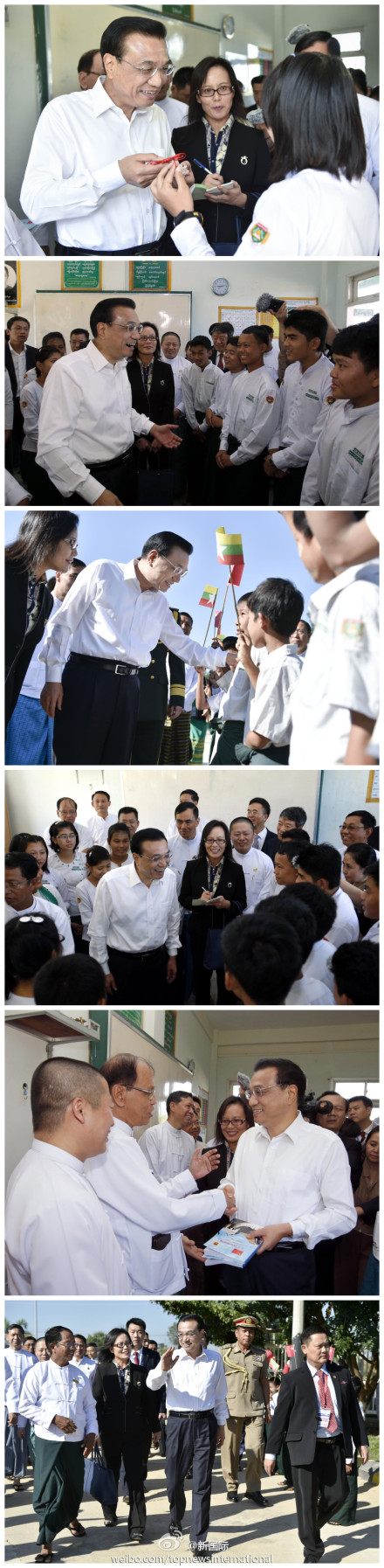 ??? 新華網(wǎng)北京11月14日電 據(jù)新華社“新國際”微博報(bào)道,李克強(qiáng)總理14日在內(nèi)比都第十四中學(xué)與緬甸青少年交流時(shí),勉勵(lì)他們更好地傳承中緬“胞波”友誼,讓中緬友好事業(yè)后繼有人。李克強(qiáng)說,中國政府明年將邀請(qǐng)100名緬甸青年赴中國訪問,還將增加對(duì)緬甸政府獎(jiǎng)學(xué)金名額,給緬甸學(xué)生赴華留學(xué)創(chuàng)造更多機(jī)會(huì)。