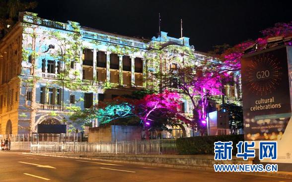 ????這是11月15日在澳大利亞布里斯班拍攝的夜景。當日,二十國集團領(lǐng)導(dǎo)人第九次峰會在澳大利亞布里斯班舉行。入夜,布里斯班街頭部分建筑披上了彩色的“外衣”。 新華社記者 趙丹惠 攝