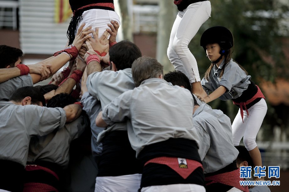 表演中,Jana開(kāi)始爬“人塔”。新華社巴塞羅那分社攝影師Pau Barrena 攝