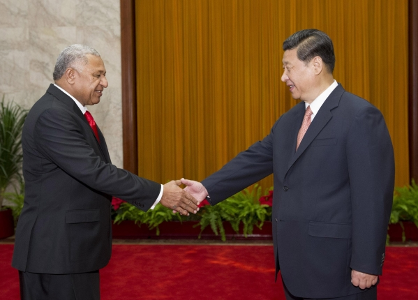????(圖為2013年5月29日,國(guó)家主席習(xí)近平在北京人民大會(huì)堂會(huì)見斐濟(jì)總理姆拜尼馬拉馬。新華社記者黃敬文攝)