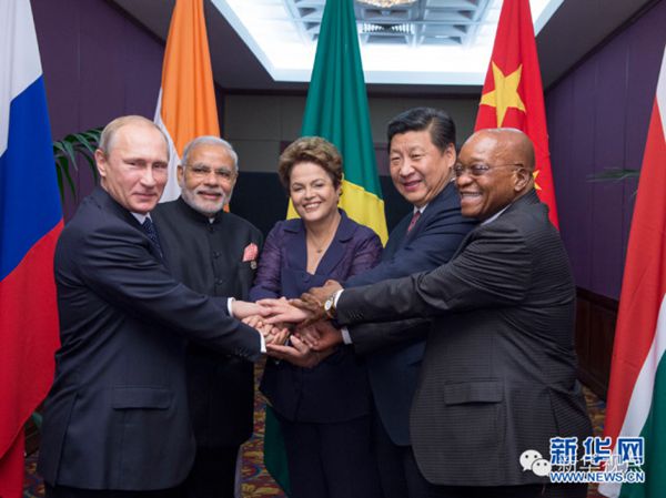 ????——金磚國家領(lǐng)導(dǎo)人非正式會晤一致同意要加強全方位合作,落實好巴西福塔萊薩會晤成果,加快推進(jìn)金磚國家開發(fā)銀行和應(yīng)急儲備安排有關(guān)建設(shè)進(jìn)程,密切溝通和協(xié)調(diào),維護共同利益。