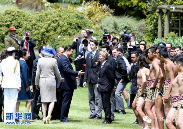 ????新西蘭的歡迎儀式頗具特色。習(xí)近平主席和夫人彭麗媛抵達(dá)時,毛利族人排著整齊列隊,表演挑戰(zhàn)儀式,以毛利族最古老的迎賓禮歡迎最尊貴的客人。