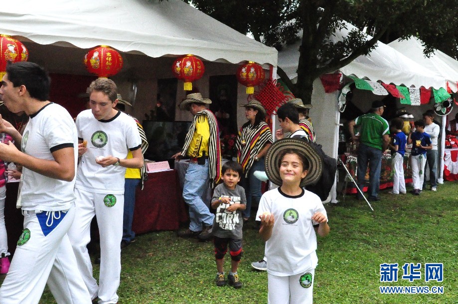 ????小朋友吃著中國(guó)的小麻團(tuán)很開心。(新華網(wǎng)記者 梁君茜 攝)