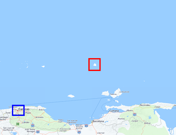 ????紅框里就是布蘭基亞(Isla La Blanquilla),藍(lán)框里是委內(nèi)瑞拉首都加拉加斯。夠遠(yuǎn)的吧?小島距離加拉加斯182公里,是著名的潛水勝地。島上覆蓋有白色沙灘,島名中的Blanquilla即來自此沙灘。岸上雖然沙灘一片雪白,但是海中卻滿布黑珊瑚。小島面積64.53平方公里,上面有仙人掌、鬣蜥、野驢和山羊。