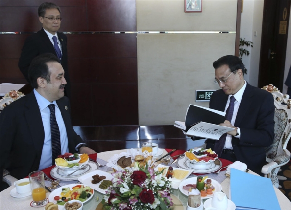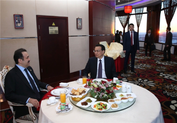 ????新華網(wǎng)北京12月16日電 據(jù)新華社“新華國際”客戶端報(bào)道,“一日之計(jì)在于晨”。克強(qiáng)總理15日的緊張日程從一頓早飯開始。天剛蒙蒙亮,哈薩克斯坦總理馬西莫夫就來到克強(qiáng)總理下榻的酒店——北京大廈,邀請(qǐng)克強(qiáng)總理一起吃早餐。