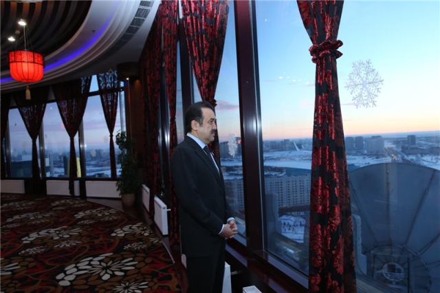 ????站在大廈23層的旋轉(zhuǎn)餐廳,阿斯塔納城盡收眼底,這里適合登高遠(yuǎn)眺。