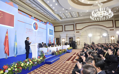 ????國務(wù)院總理李克強(qiáng)當(dāng)?shù)貢r(shí)間14日下午在阿斯塔納與哈薩克斯坦總理馬西莫夫共同出席中哈企業(yè)家委員會第二次會議閉幕式并致辭。