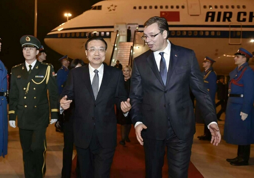 李克強(qiáng)抵貝爾格萊德,塞總理率兩位副總理到機(jī)場(chǎng)迎接