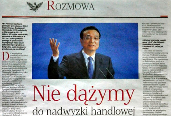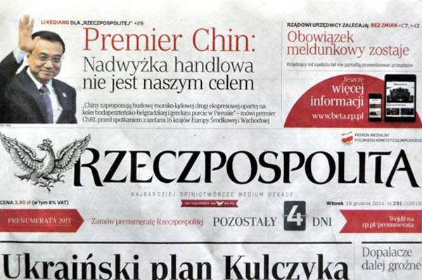 波蘭《共和國報(bào)》刊登對李克強(qiáng)聯(lián)合書面采訪稿件